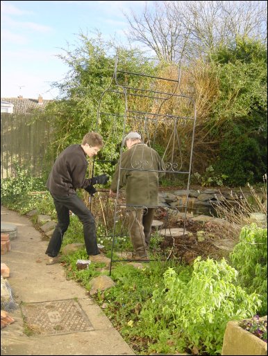 I got a garden arch and a bench for Christmas (which generally had a gardening theme as I got some great gardening tools as well!). We will be able to sit by the pond and admire it next summer. Here is Chris and my father putting up the Arch which was made by my father at The Forge in Addington Village, Surrey, near the Kent/Surrey border. As previously mentioned the flower bed is now finished but I haven't had much chance to plant it up yet. I shall be doing that over the next 6 months.