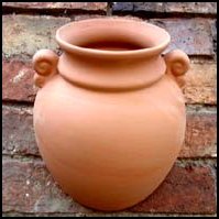Smaller terracotta flower pots or jars, that are small enough for the fridge or freezer are ideal as your chinchilla can get right inside. Hanging urns (see picture below) or planters often have flat backs and make nice cool caves, but watch out for any rubber bungs or holes that little noses can get stuck in. The ceramic sandbaths shown below, which again would fit in the freezer, seem to only be sold in the US, but have a look around for clay/ceramic cookware that would do a similar job. With anything like this keep an eye out for chewing damage as it might not be good for a chinchilla to swallow bits that it chewed off.